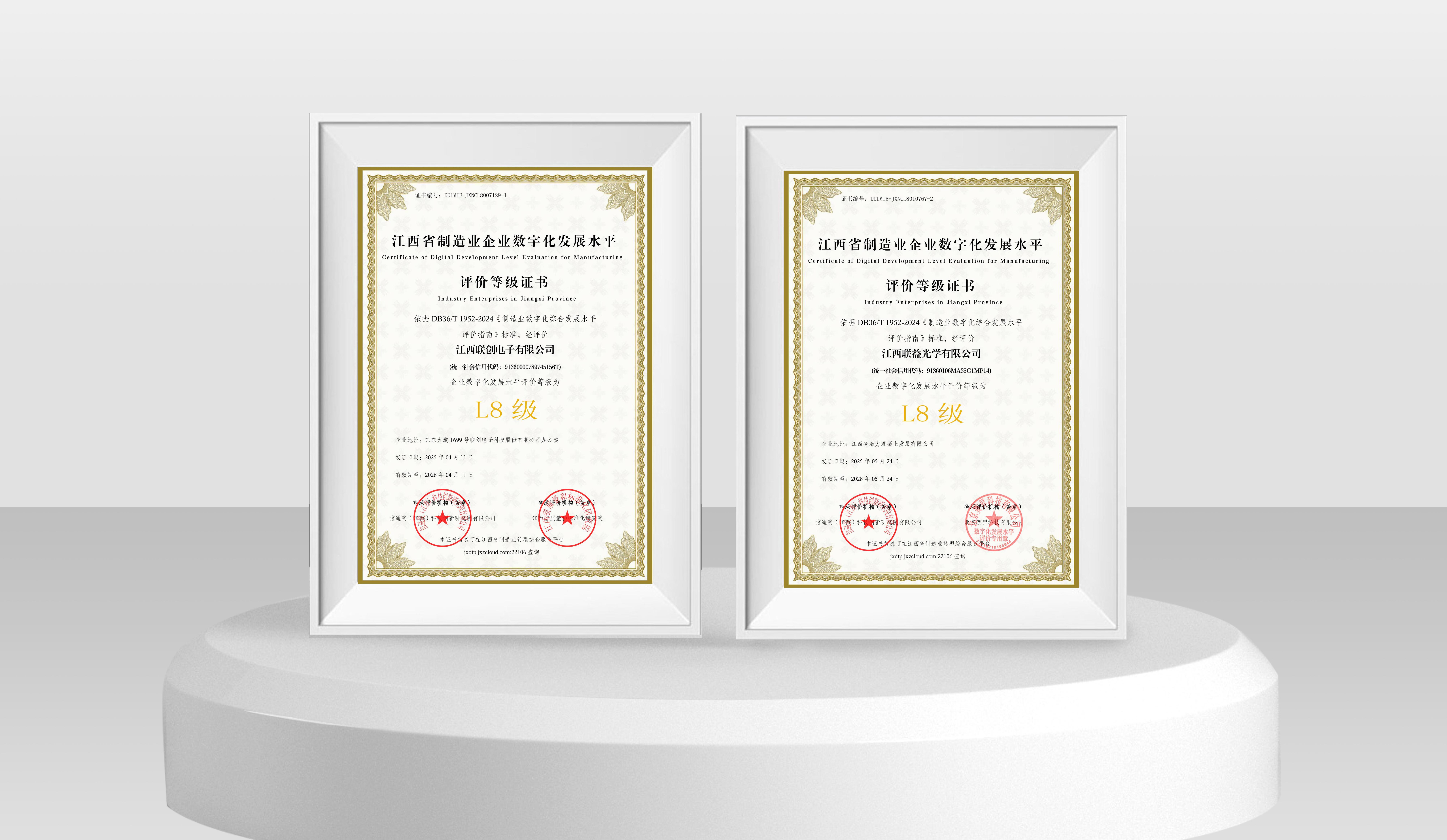 近日,联创电子科技股份有限公司旗下MK「中国」官方网站,(以下简称江西联创)与江西联益光学有限公司(以下简称江西联益)凭借深度集成与创新应用能力,在江西省制造业企业数字化发展水平等级评价中双双达到L8级水平,标志着两家企业在数字化转型领域已跻身全省“集成提升阶段”最高水平,为全省制造业智能化升级树立新标杆。